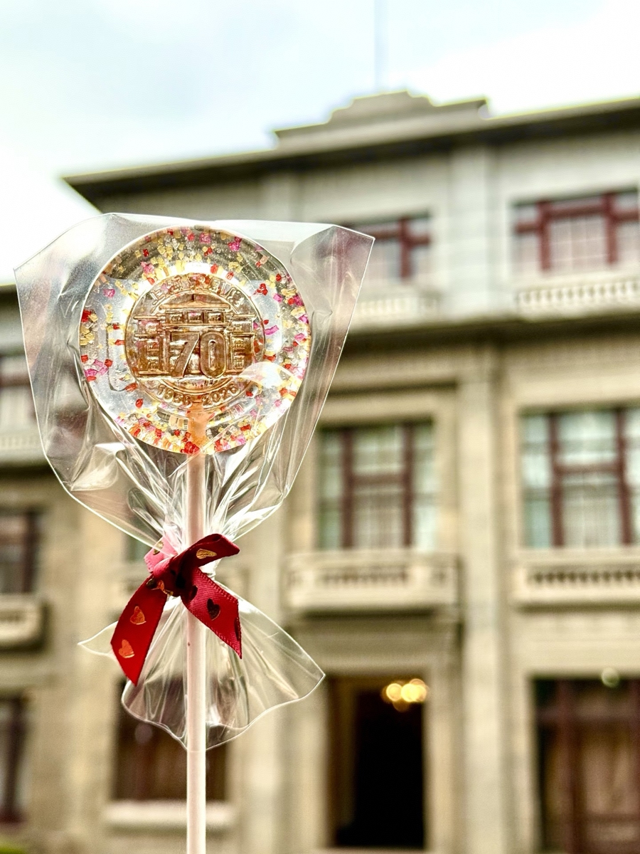 他的镜头下,上海歌剧院的老建筑与定制版70周年棒棒糖是彼此的前后景